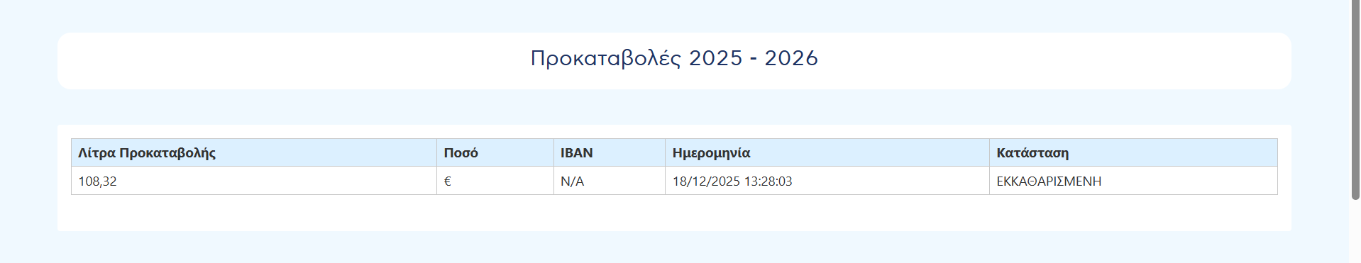 Στον πίνακα προκαταβολών εμφανίζονται τα λίτρα της προκαταβολής.