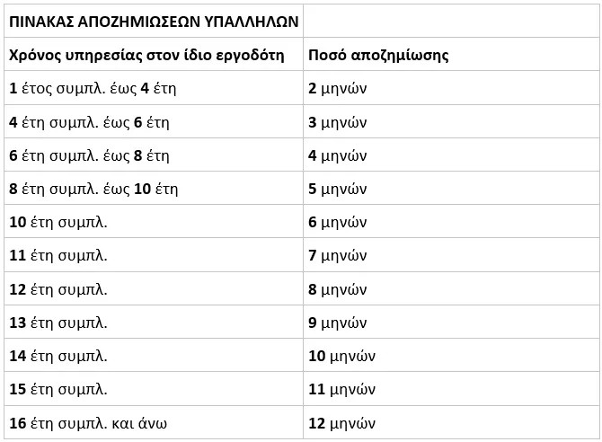 Έτη υπηρεσίας Αποζημίωση